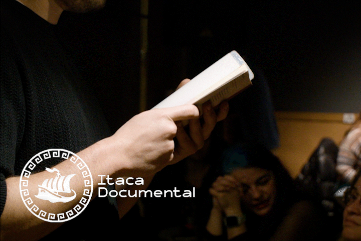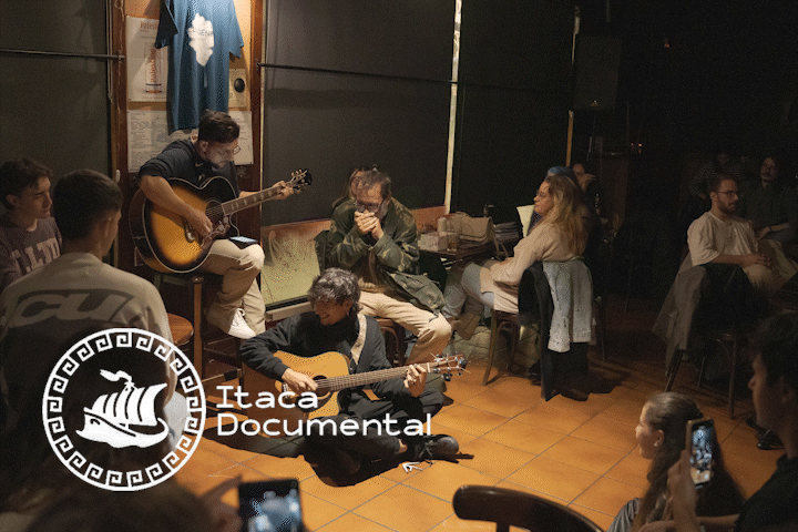 ÍTACA es un cortometraje documental donde viviremos la experiencia de una noche de micro abierto en el bar Ítaca. Seguiremos a algunas de las personas que asisten al Ítaca un miércoles por la noche, desde el barman, socio del bar desde más de dos décadas, pasando por músicos que cada semana improvisan qué canción van a tocar, hasta personas dispuestas a subirse a un escenario por primera vez en su vida.