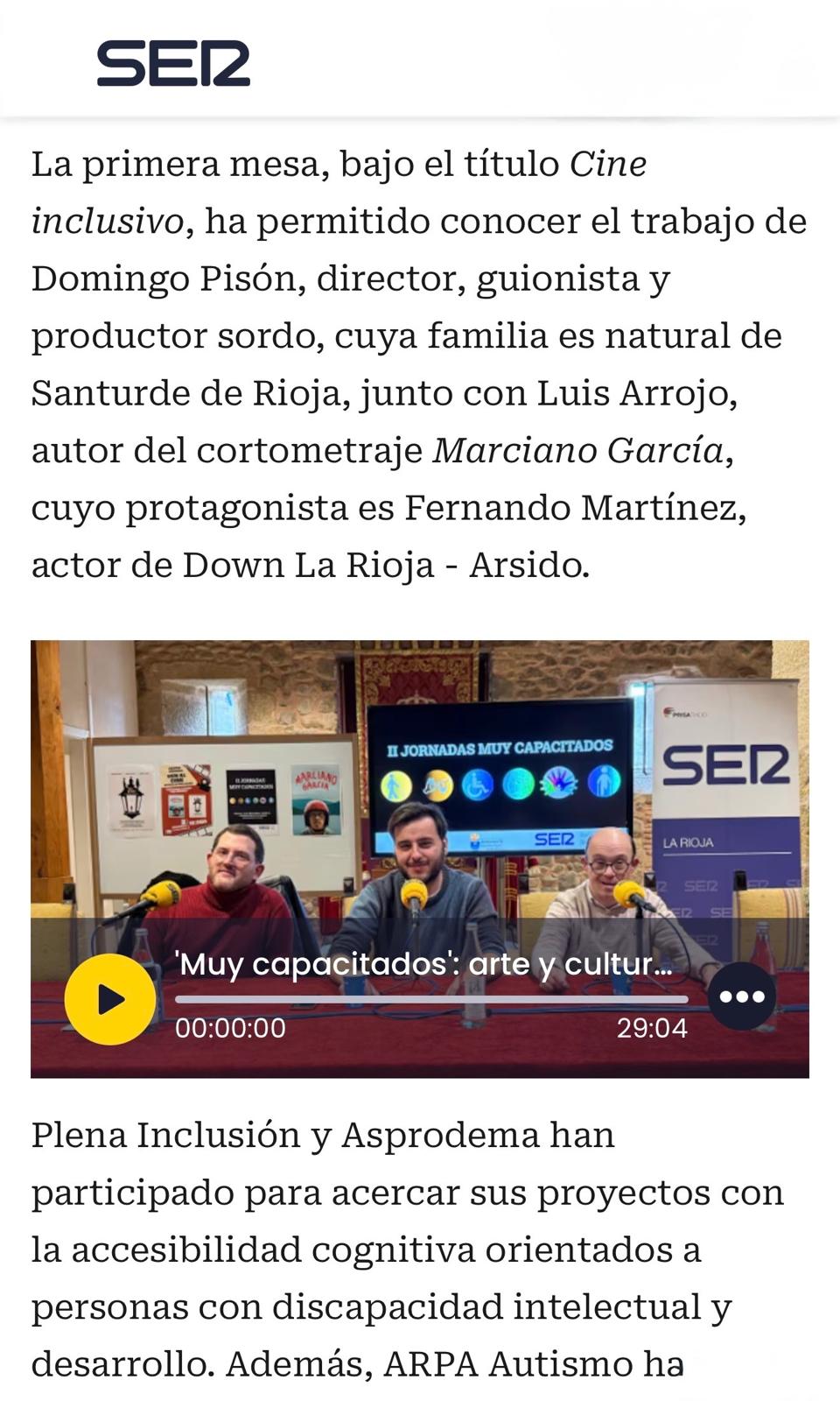 Regresando en Diciembre de nuevo a La Rioja con gran asistencia en la capital logroñesa gracias a su participación en el 17ª Edición DiscapacitAcción! cuyo éxito riojano se hizo eco la prensa regional por la que el director Domingo Pisón acudió personalmente a la radio La SER La Rioja para dar su cobertura y experiencia sobre el cortometraje y su importancia en el cine inclusivo con motivo del día internacional de las personas con discapacidad y finalmente se proyectó en el Teatro Avenida del prestigioso pueblo Santo Domingo de la Calzada (Foto de texto abajo).